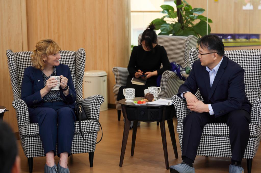 交流会上,王兆宝向珍妮特·莫里森一行的到来表示热烈欢迎,对两校的合作前景充满信心和期待。他指出,学校始终致力于培养具有国际视野的高素质应用型人才,持续加强在人才培养、国际交流、科研创新等方面工作,学校为学生提供免费的英、日、俄语培训,为学生未来的职业发展提供更多可能。希望两校能充分发挥各自优势,进一步深化在开放式职业培训、合作办学、科研项目研发与推广等方面合作,提升交流层次,共同促进双方在教学、科研和人才培养水平方面的提升。