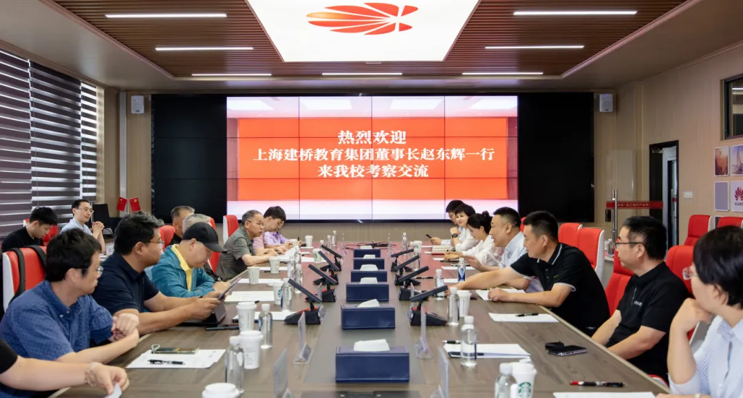 7月3日,上海建桥学院董事长赵东辉、常务副校长张震、副校长赵雷洪、教务处处长陈年生、产教融合促进中心副主任徐磊等一行11人来我校考察交流。双方围绕产业学院建设的探索实践与未来方向、民办高校在数字化转型浪潮中如何深化产教融合、提升育人质量等内容进行深入的交流与探讨。我校董事长王兆宝、常务副校长公丕国出席活动。