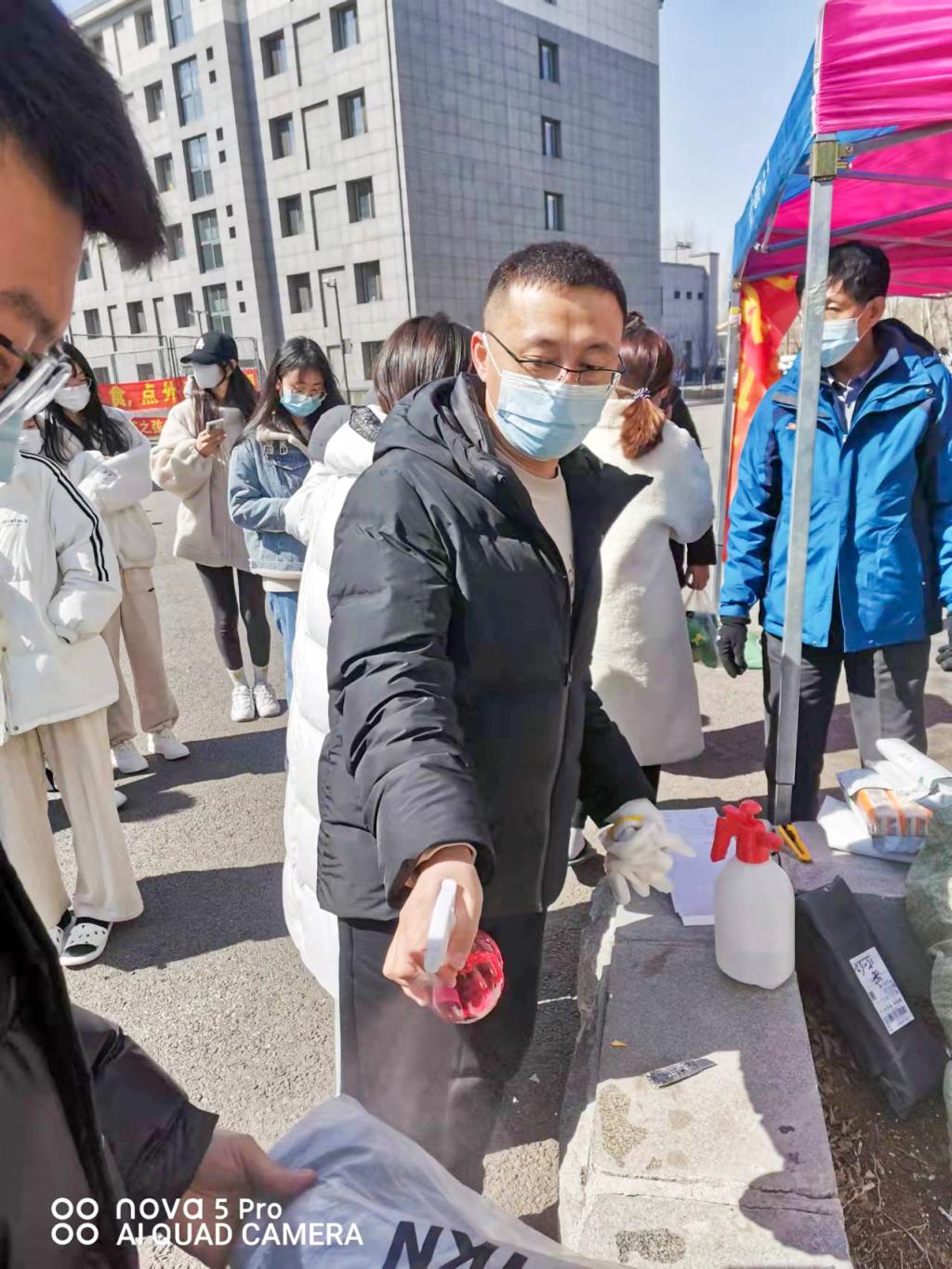 基础课部军事体育教研室的党员教师没有一丝犹豫,大家克服了家里孩子需要照顾等困难,在倡议发出后,第一时间就全部报名参加。此次,校党委发出倡议后,近期没有教学任务的体育教师们纷纷踊跃报名成为志愿者,大家都想尽自己的一份力去守护好我们的学校,我们这个大家庭。3月16日一早,基础课部军事体育教研室的三位教师李凌、王良宇、尤黎黎就来到了校医院,经过校医院教师韦伟的培训后,立即投入到疫情防控工作中。王良宇老师协助校医院的医生维持做核酸检测学生的秩序,认真核对每一名学生的信息。李凌老师协助校医院范桂琴医生检查学生寝室通风消杀记录、隔离学生的人数以及各单位承诺书签署情况。尤黎黎老师协助借调到校医院工作的后勤保障部行政秘书尹娜做好大数据排查工作。李凌老师说,看到校党委的倡议时,自己没有多想,学校就是我们的家,学校有需要我们冲锋在前义不容辞,我和同事们都报了名。在疫情防控工作中,学校的全体教职工团结一心,组建起一支能打硬仗的队伍。昨天还看到了天津市宝坻区给我们学校送来的感谢信,让我热血沸腾,我们的学生都能积极参与到疫情防控工作中,作为老师更应该以身作则,守好学校的疫情防控安全线。