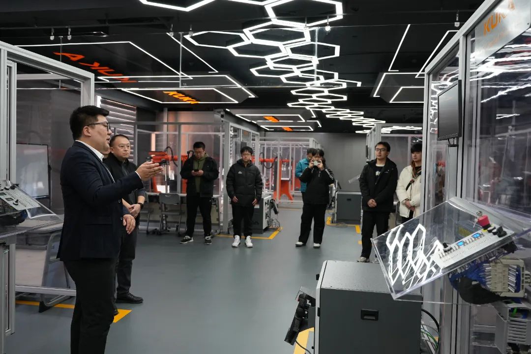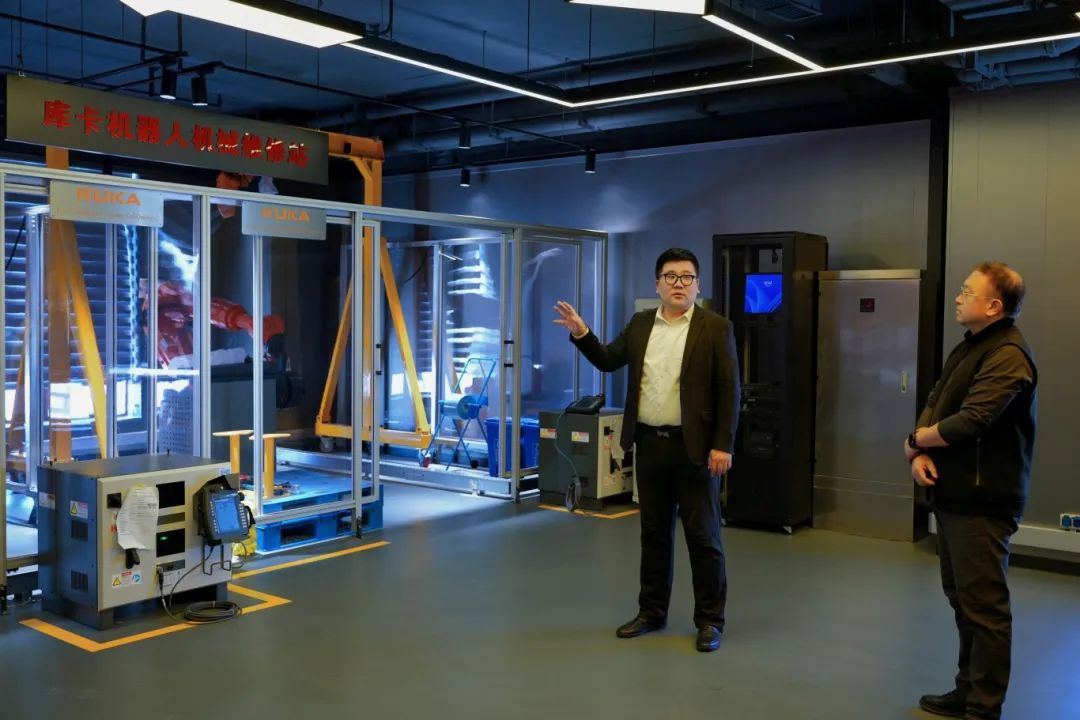 学习中,大家看到库卡中国提供的汽车车门点焊涂胶装配工艺线为原型的行业级生产线,包含机器人产线、AGV物料运输和穿梭车立体库三个部分,并参观了立体仓库实训系统、智慧物流实训系统、机器人仿真实训平台和数字孪生实训平台等,真切认识到现代工业机器人工作模式及效果,切实了解到全面覆盖机器人集成应用的系列课程和培训实训系统平台,提升了对智能制造发展趋势的认知。