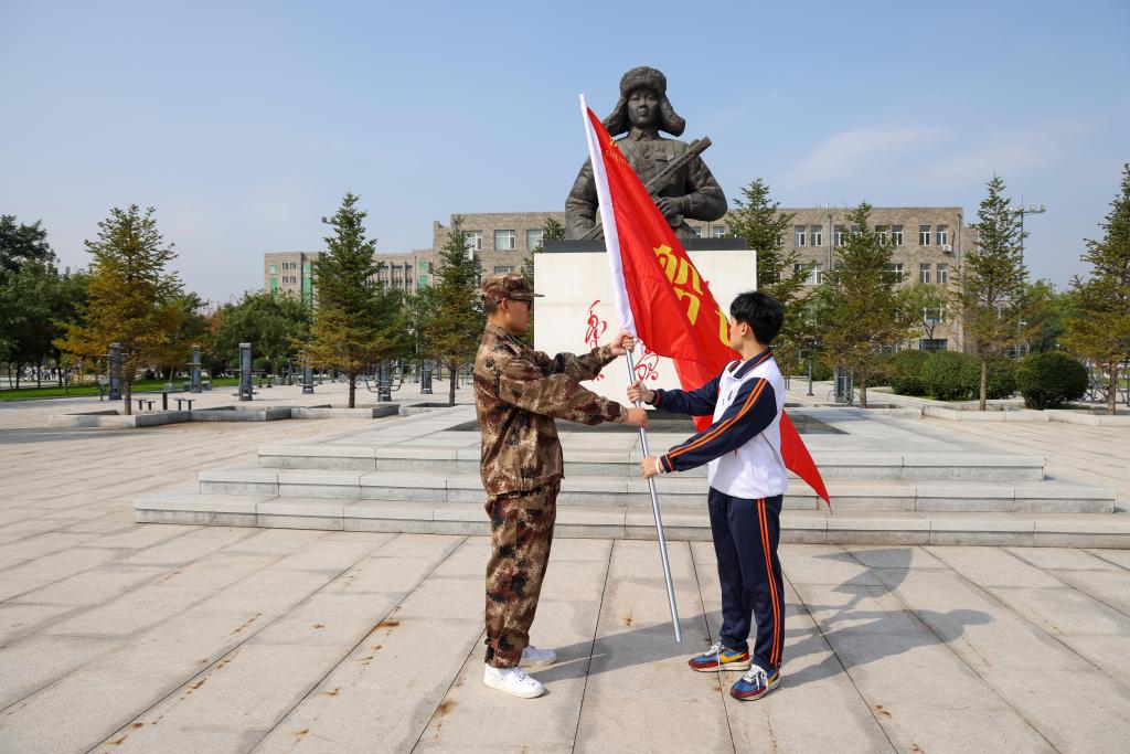 在雷锋铜像前,原船钉班班长焦庭喆与2021级船钉班代表许博超进行了船钉班旗帜交接。随后,2021级工业设计专业学生张荣梦代表全体2021级船钉班同学庄严承诺:“缅怀船钉烈士、践行船钉精神,做对国家和社会有用的人才!”2021级船钉班全体同学面向旗帜庄严宣誓。