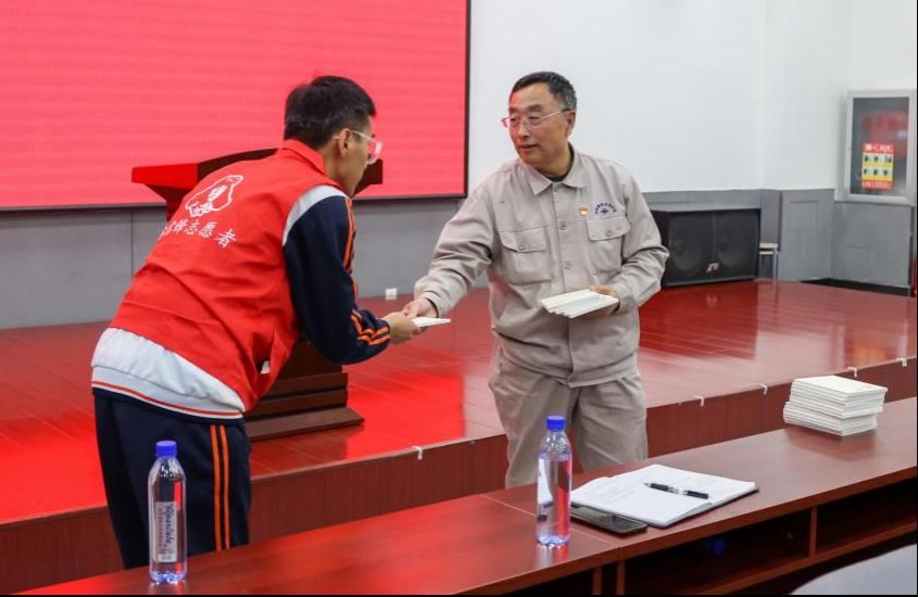 报告会上,郭明义向现场师生赠送书籍《咱们为什么要有信仰》,并以此书鼓励大家坚定理想信念,练就过硬本领,为实现中华民族伟大复兴的中国梦贡献自己的青春力量。